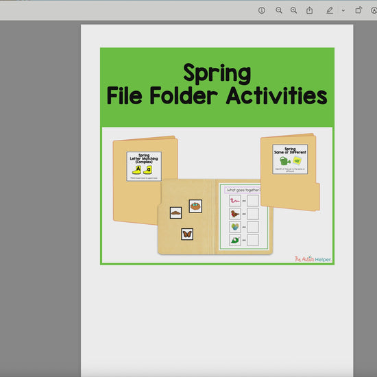 Supplement your instruction during the spring season with our set of 30 hands-on AND digital spring-themed file folder activities, each designed to enhance fundamental academic skills. These activities offer versatile learning opportunities targeting counting, addition, subtraction, sequencing, early phonics, categories, associations, patterns, and more! Perfect for independent work, guided practice, partner activities, or thematic units, these resources cater to diverse learning styles and environments. Whether in the classroom or at home, these activities provide a fun and educational way to support skill development for individuals with autism and special needs. This resource also includes an entirely DIGITAL VERSION!
