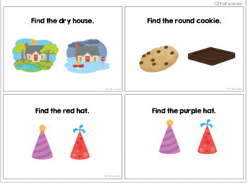 Task cards are ideal for targeting those specific skills or using as extension activities, even if you do not use the ABLLS-R! Target expressive and receptive labeling and identification of adjectives with this set. The receptive task cards target identifying adjectives out of a field of two and both pairs of opposite adjectives are included in this set of task cards (to reduce risk of memorization). The expressive task cards contain clipart and real photo task cards to help build generalization.