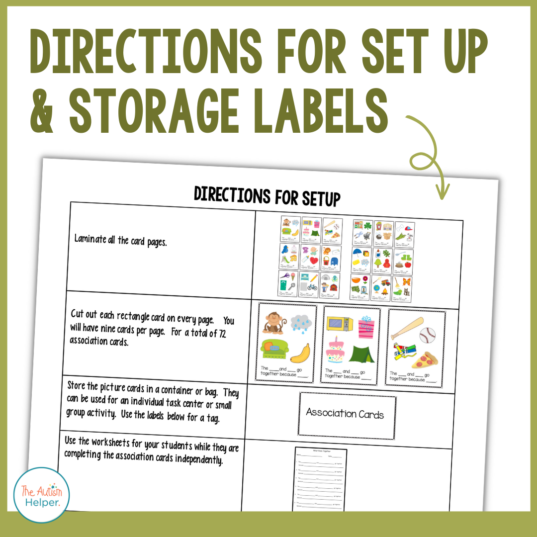 The skill of identifying associated items builds upon basic categorization to further students' problem-solving and critical-thinking skills. These task cards are designed to target simple associations through 72 unique examples with diverse images and concepts to reinforce the concept. Take this skill further by asking "why" questions to encourage students to explain the association, which is the foundation for comparing and contrasting!