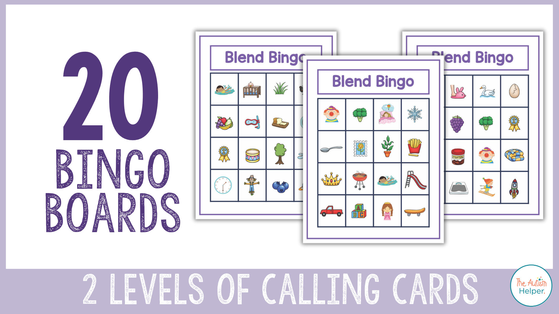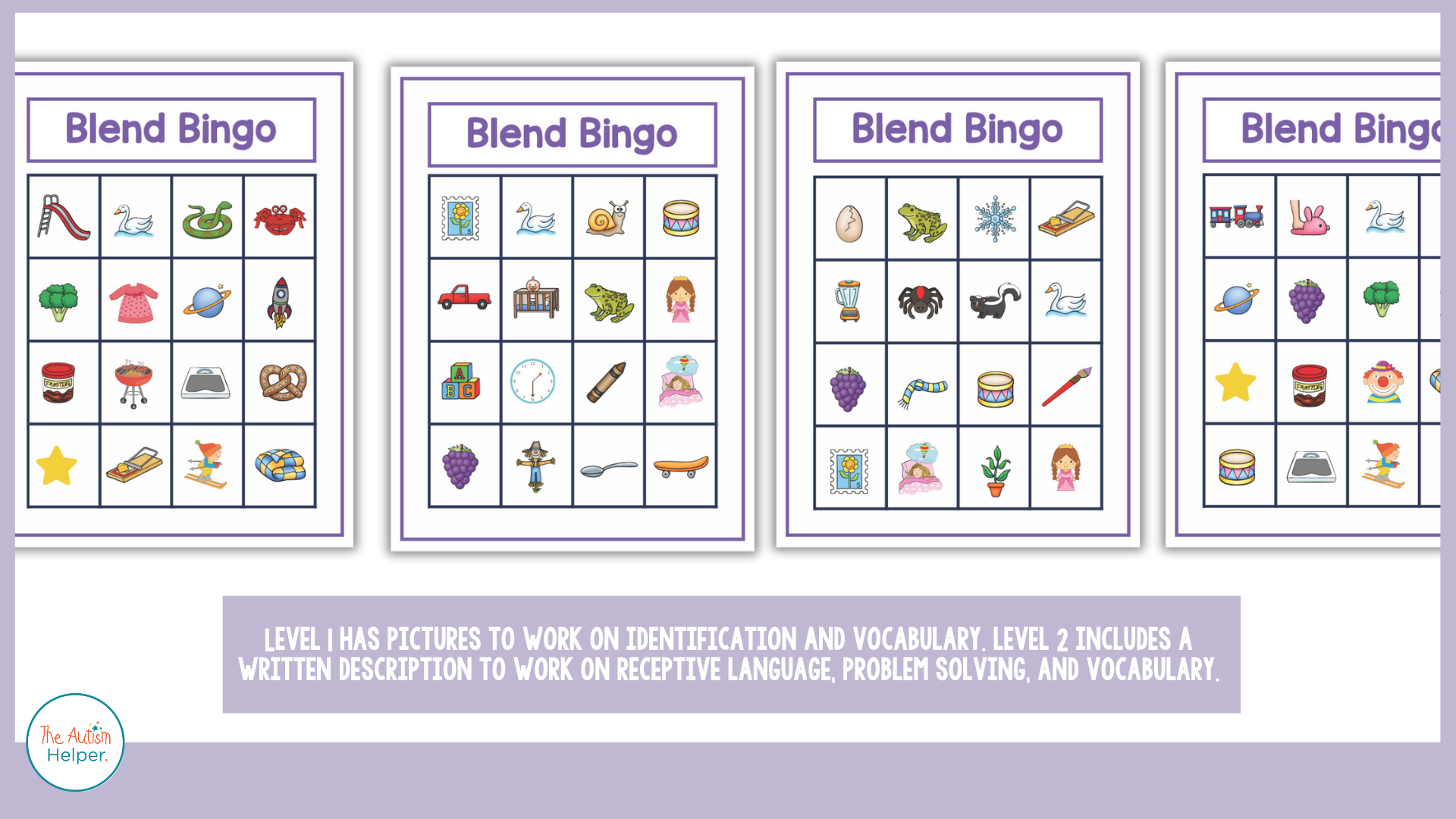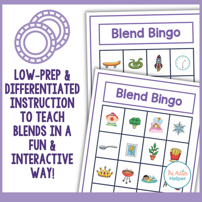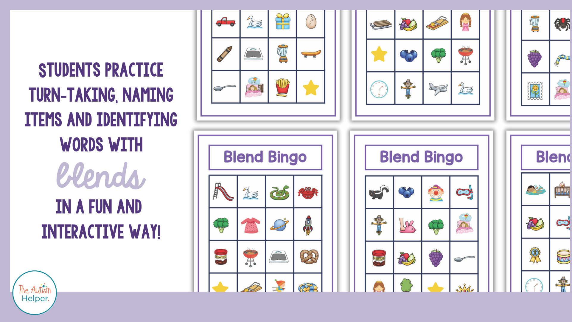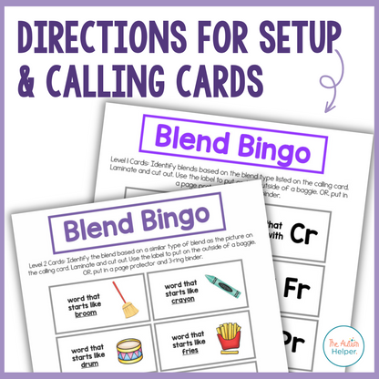 Elevate language skills with this interactive Bingo game designed for special education and autism instruction, focusing on identifying objects based on consonant blends. This resource provides 20 boards, a visual answer key, and calling cards for two levels of play. The concrete level enhances picture identification and vocabulary, while the complex version includes written descriptions to promote receptive language, problem-solving, and vocabulary building. Bingo not only sharpens linguistic abilities but also nurtures turn-taking and leadership skills, making it an excellent tool for collaborative learning during independent group sessions. Simply laminate or print on cardstock for a quick and effective educational resource.