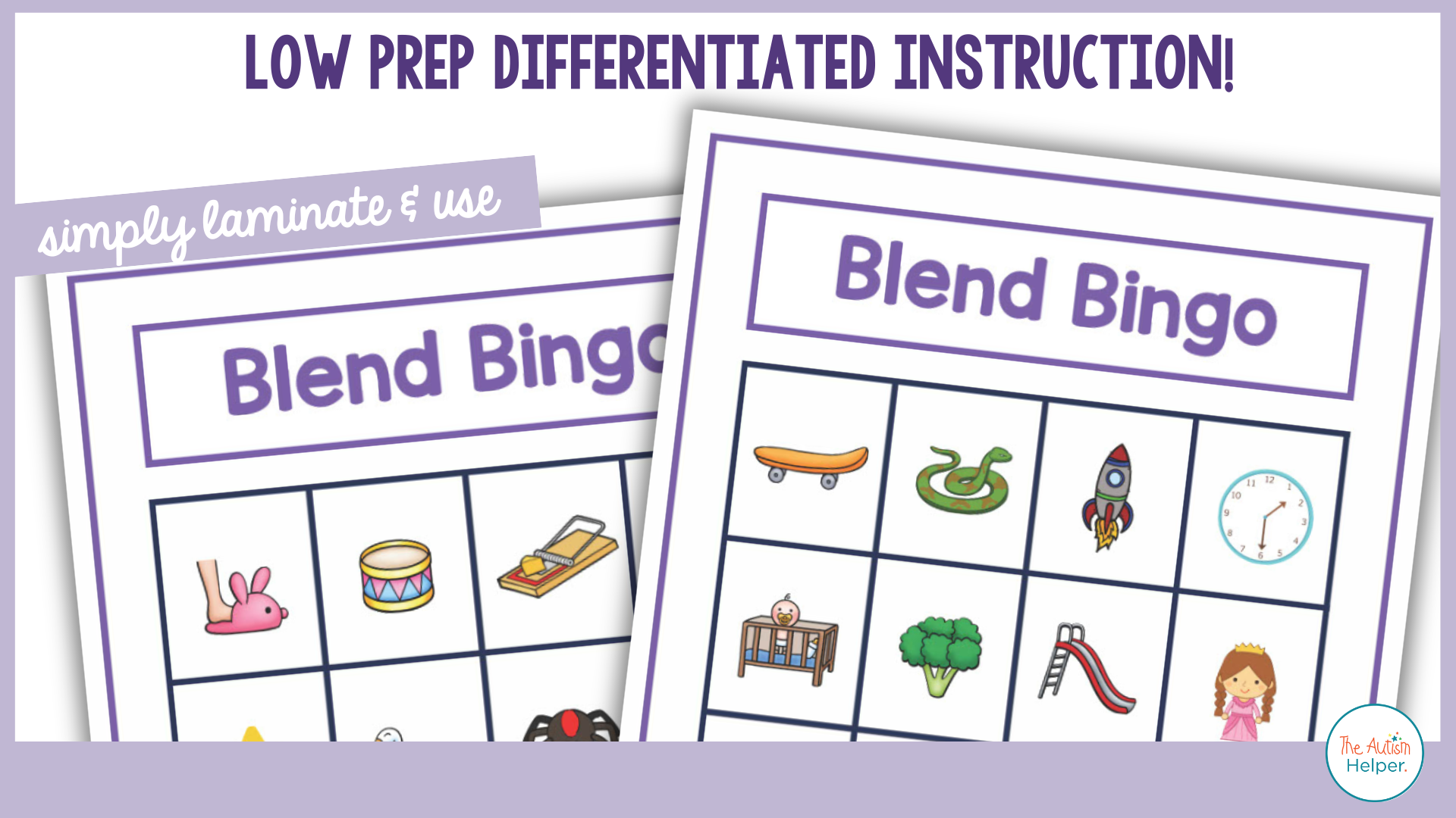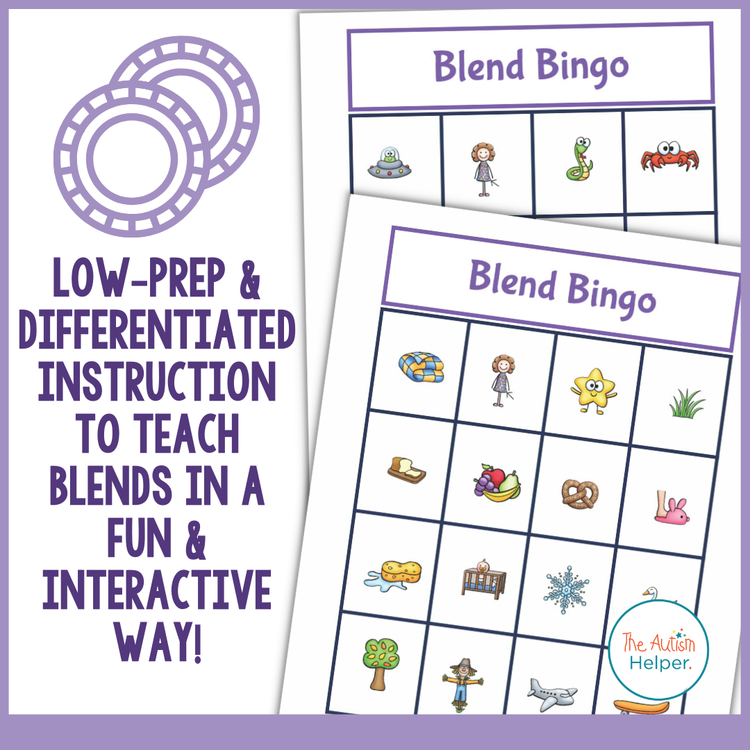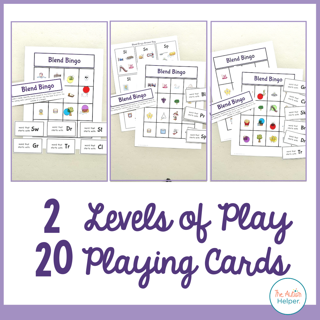 Elevate language skills with this interactive Bingo game designed for special education and autism instruction, focusing on identifying objects based on consonant blends. This resource provides 20 boards, a visual answer key, and calling cards for two levels of play. The concrete level enhances picture identification and vocabulary, while the complex version includes written descriptions to promote receptive language, problem-solving, and vocabulary building. Bingo not only sharpens linguistic abilities but also nurtures turn-taking and leadership skills, making it an excellent tool for collaborative learning during independent group sessions. Simply laminate or print on cardstock for a quick and effective educational resource.