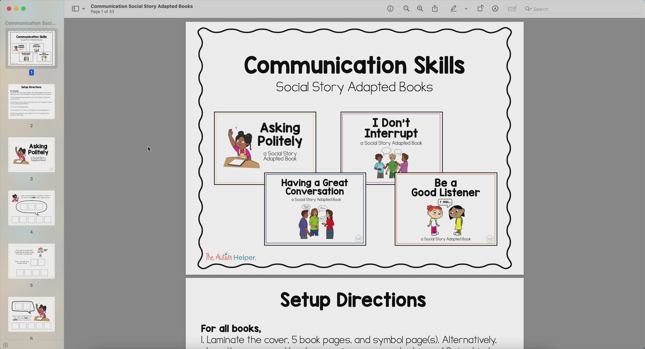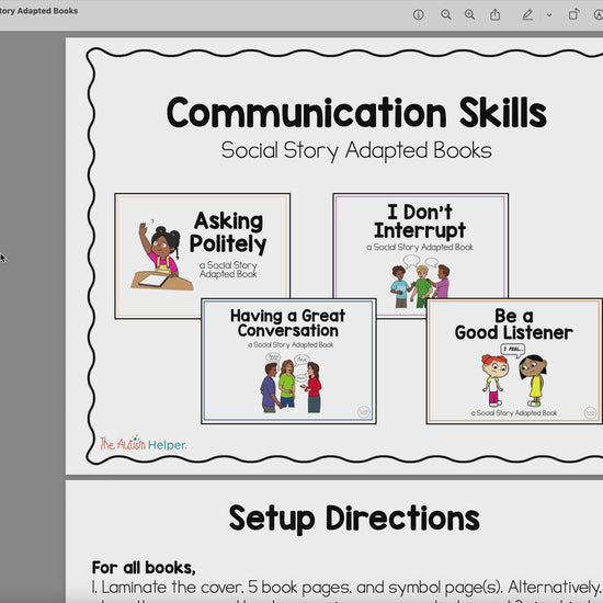 These mini-stories can be used as proactive tools before anticipated events or read regularly to reinforce essential social skills. The four included stories are "I Don't Interrupt," "Asking Politely," "Having a Great Conversation," and "How to Be a Good Listener."