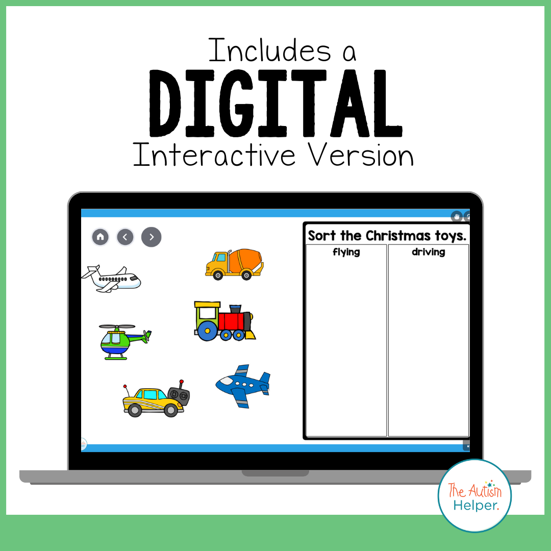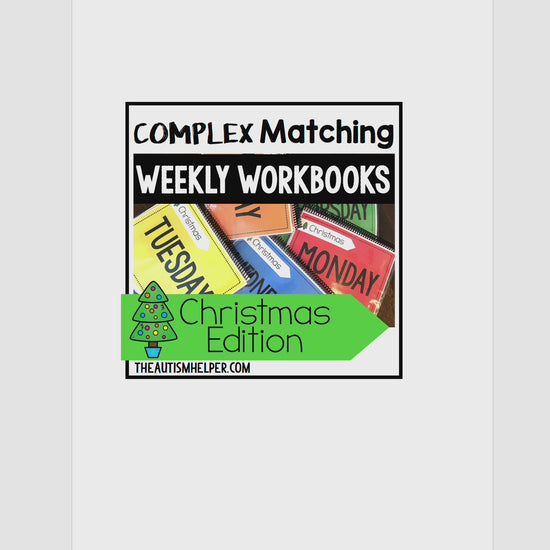 Utilize our step-by-step instructions and printable to create 5 exciting workbooks, one for each weekday. Updated to include an interactive digital version! Each workbook features 6 complex activities, including complex matching, sorting, answering WH questions with pictures, prepositions, addition within 20, beginning letters words, and multiple step direction following - all with delightful Christmas-themed topics. Optional extra pieces allow you to increase or decrease the complexity of the skill level for several tasks. Explore fun subjects like trimming a Christmas tree, Santa & his elves, gingerbread, and snowmen, providing both education and enjoyment. Keep learners motivated with different activities at the same skill level, while fostering independent work skills, fine motor abilities, and task initiation. Ideal for learners ready to expand on basic skills and who are ready to practice crucial skills in a school-based setting.