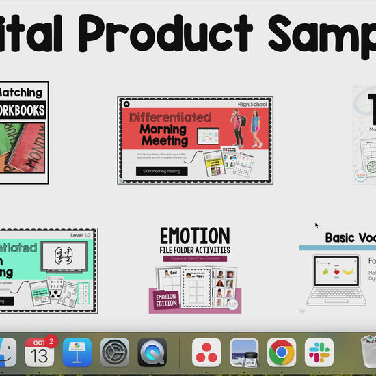 Explore and try six of The Autism Helper's best-selling digital resources! This product includes samples of our Easy Matching Weekly Workbook, Differentiated Morning Meeting - High School, Time Management & Waiting Visuals, Differentiated Math Meeting Level 1.0, Emotion File Folder Activities, and Basic Vocabulary Task Cards.