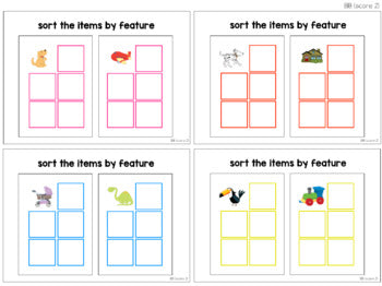 • 36 interactive task cards for sorting by feature (of increasing field size 2 features - 4 features) with all sorting pieces (B18)