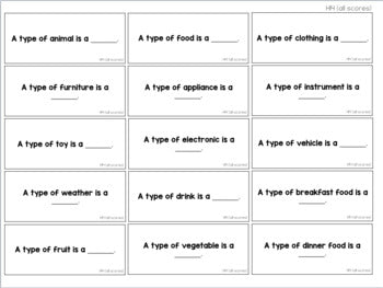 Task cards are ideal for targeting those specific skills or using as extension activities, even if you do not use the ABLLS-R! Use these task cards to work on a variety of questions and fill in sentences all centered around identifying the feature, function, and class or an item or group. These cards are used as a teacher prompt to read the phrase or question and the student will respond verbally.