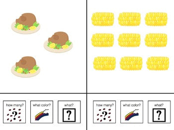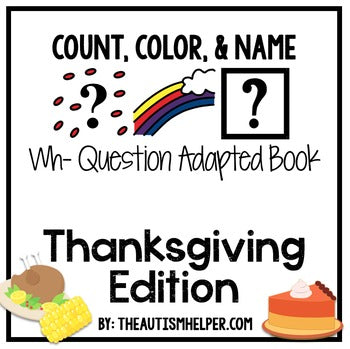 Count, Color, & Name Wh-Question Adapted Book - Thanksgiving