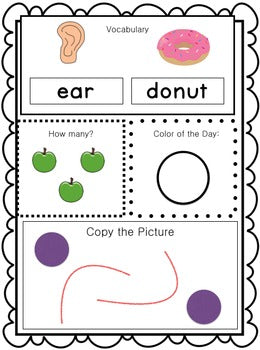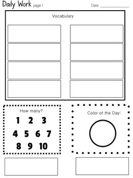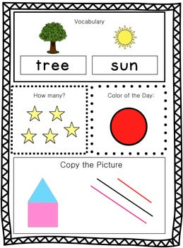 This versatile resource is designed to support your teaching needs seamlessly from August to June, covering the entire school year. With 180 interchangeable leveled daily work pages, your students will engage with different activities each day, promoting varied and comprehensive learning. Print once, make copies of the student worksheets, and your prep work is complete. Ideal for independent work, guided practice, direct instruction, small group activities, warm-up sessions, classroom centers, or stations managed by paraprofessionals, this resource offers flexibility and efficiency. Level 1 focuses on essential skills like vocabulary, counting items, identifying colors, and fine motor skill development, making it particularly suitable for students with minimal writing skills.