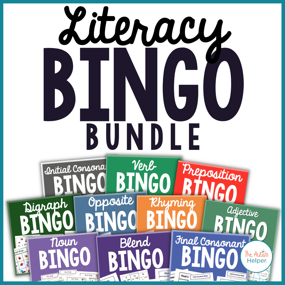 Enhance literacy skills with this comprehensive BUNDLE of 10 engaging bingo games! Bingo proves to be an effective tool for honing literacy skills, expressive/receptive language, social interaction, and problem-solving. This mega pack covers various skill levels, offering 20 boards and 1-2 levels of calling cards per game.