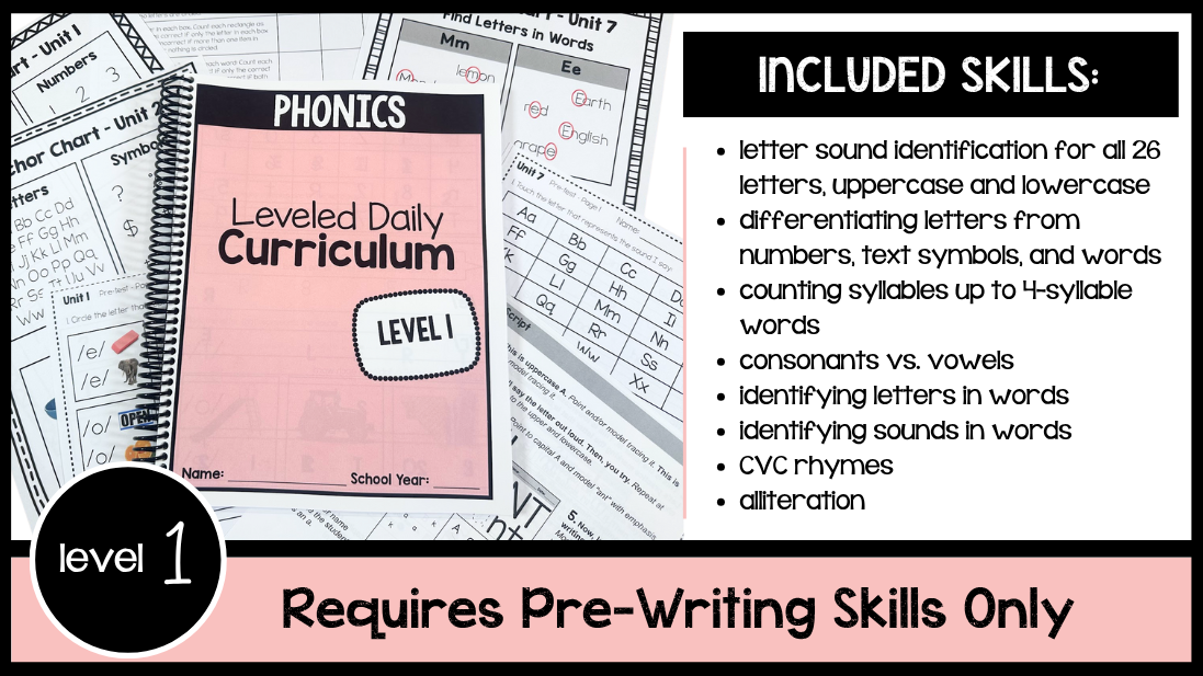 Phonics Leveled Daily Curriculum {LEVEL 1}
