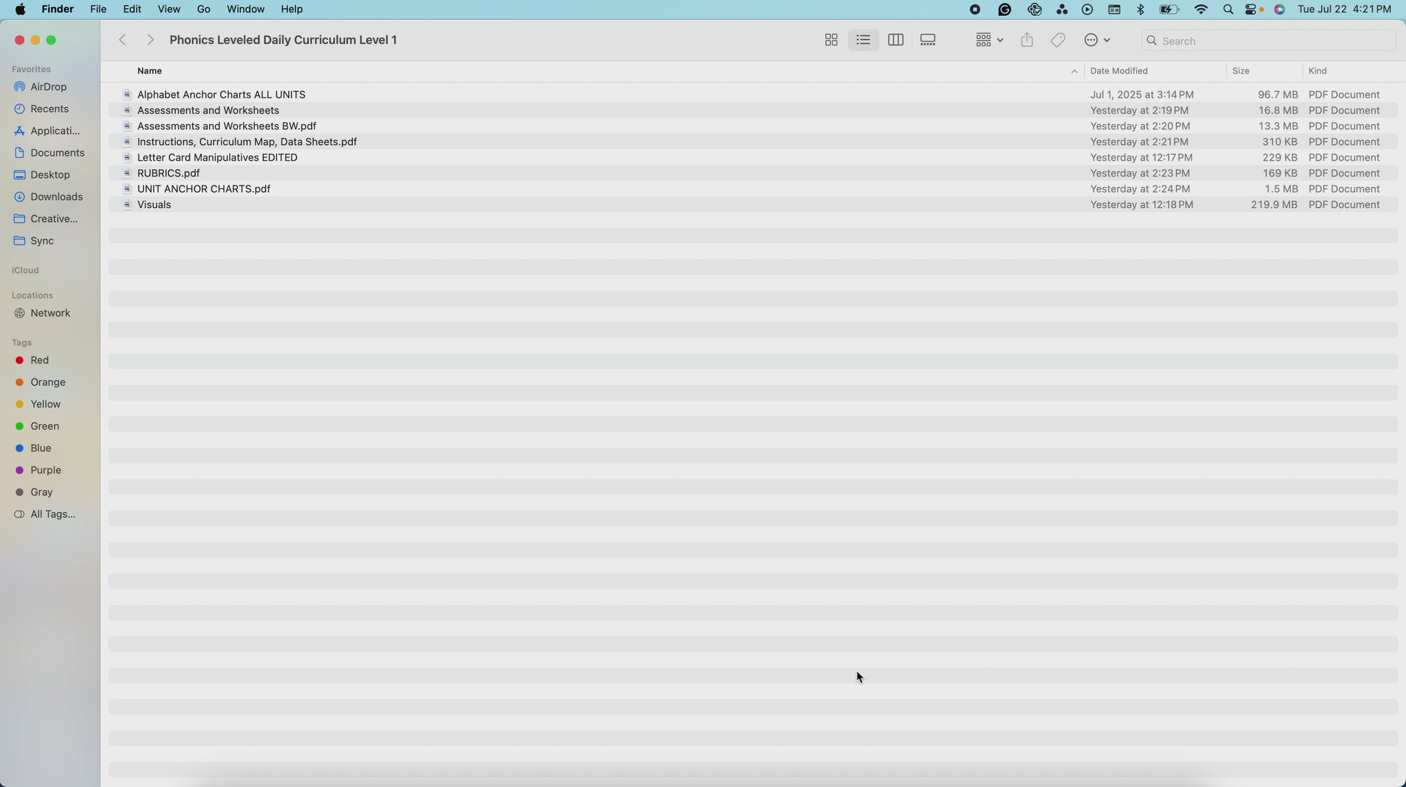 Level 1 of our Phonics Leveled Daily Curriculum uses explicit instruction to teach the sounds of all 26 letters (uppercase and lowercase), differentiation of letters from numbers, text symbols, and words, identifying syllables, alliteration, CVC rhymes, and identifying letters and letter sounds within single words.