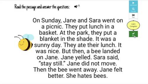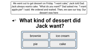 Enhance reading comprehension skills with our set of three decks with a total of 60 digital task cards, focusing on Level E passages (Lexile Level 200L-300L). Each deck includes 5 written passages, with the student reading the passage and 3 comprehension questions. Questions are read aloud, providing auditory support, while written response options encourage independent thinking. Elevate reading comprehension in a supportive and engaging way with this resource.
