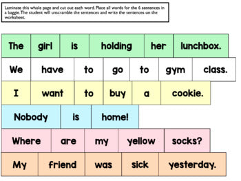 Enhance sentence building skills in a fun and interactive way with this comprehensive resource designed for special education students. The pack includes 4 diverse centers, offering a total of 40 work tasks, each aimed at promoting hands-on sentence construction. With activities like 'Sentence Spinners,' where students create unique sentences using spinners and record them on worksheets, or 'Sentence Scrambler,' challenging students to unscramble words and write sentences, this resource provides engaging learning experiences. Other centers such as 'Sentence Sets' and 'Sentence Sorter' further reinforce sentence structure through sorting and categorization. Elevate your teaching approach and support your students in mastering essential language skills with these hands-on centers.