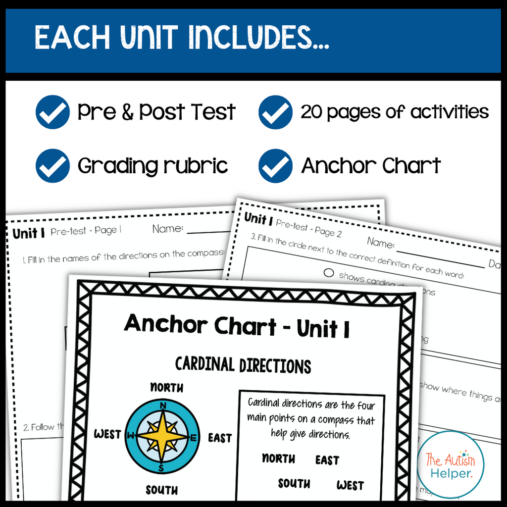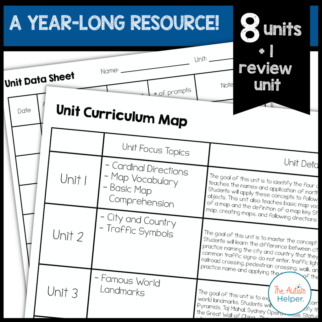 This year-long social studies curriculum focuses on teaching social studies skills and concepts. This resource is designed for special education students and autistic learners as it is visual-based and features a step-by-step progression of skills.