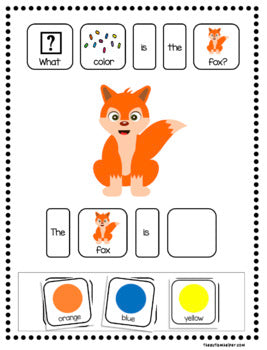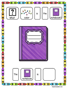 Ideal for diverse educational settings, these books offer versatility in teaching color skills. "What Color is the Food?" focuses on selecting food items of specific colors. "What Color is the Animal?" challenges students to identify the color of each animal from a selection of three. "What Color is the School Supply?" concentrates on identifying the color of various school supplies. Detailed setup instructions and a convenient storage board for the pictures are included.