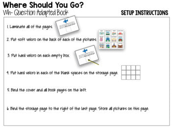 Enhance your students' learning with this engaging adapted book, perfect for honing 'where' question skills. This resource focuses on crucial abilities like making inferences, community vocabulary, and listening comprehension. This book features 12 pages, each with a description of a different location. Students place the correct answer to each question on the page, facilitating interactive and hands-on learning. Detailed setup instructions and built-in picture storage are included. This resource is great for social studies and life skills lessons!